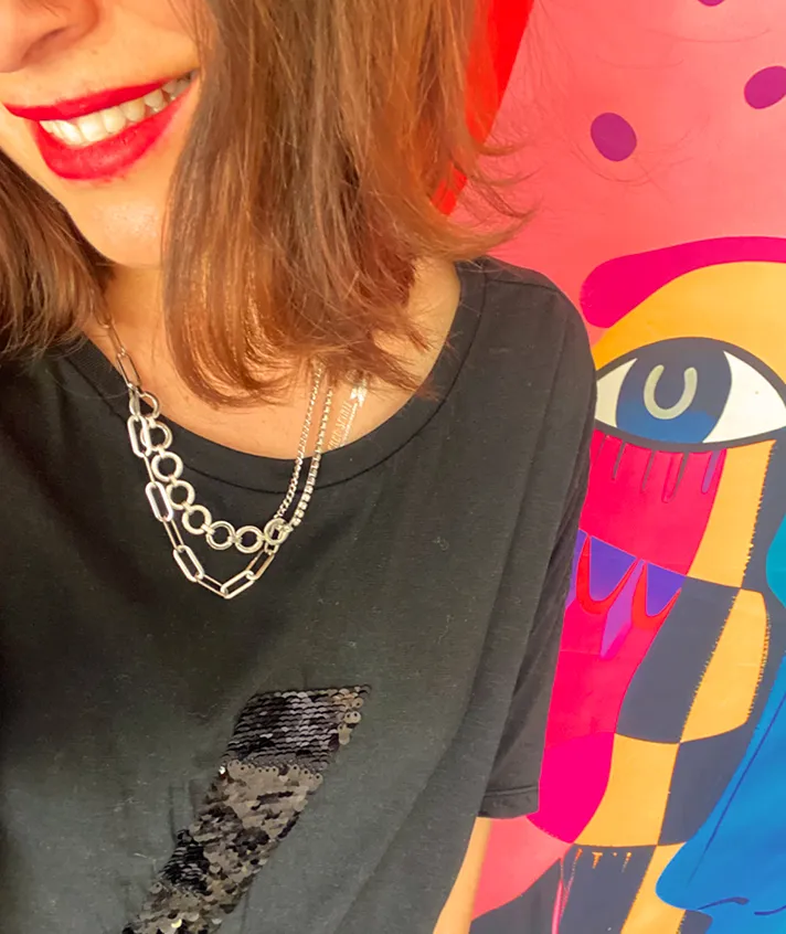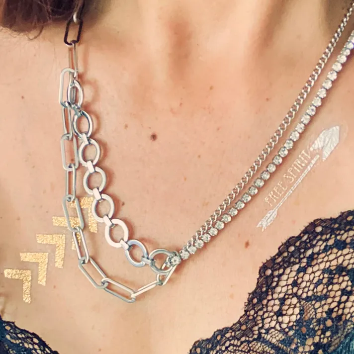 Mélange de chaînes de mailles différentes et strass