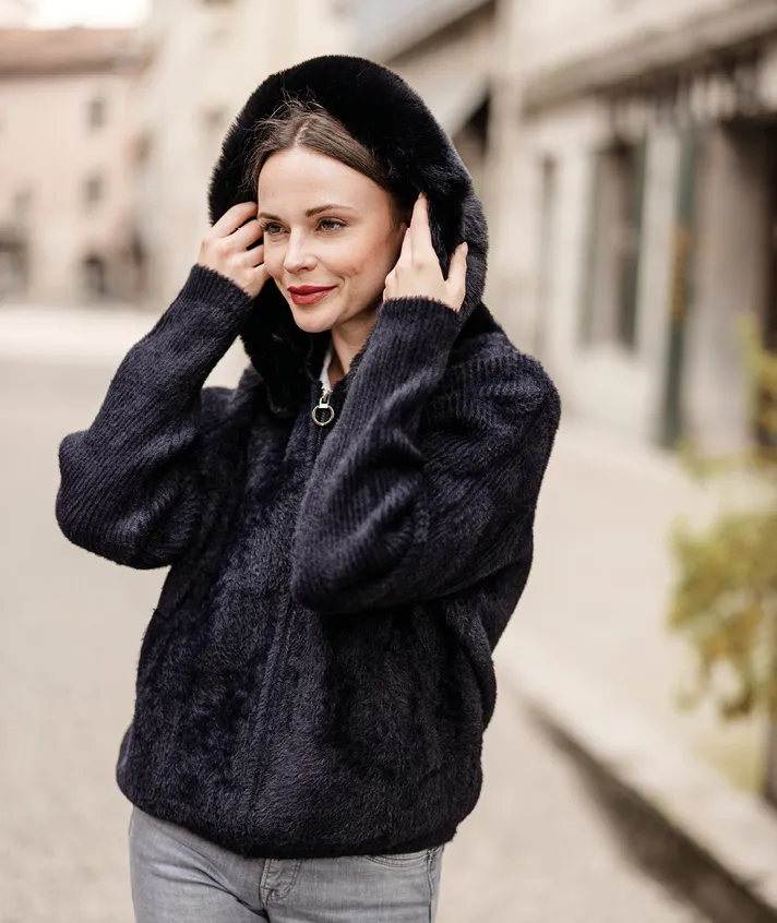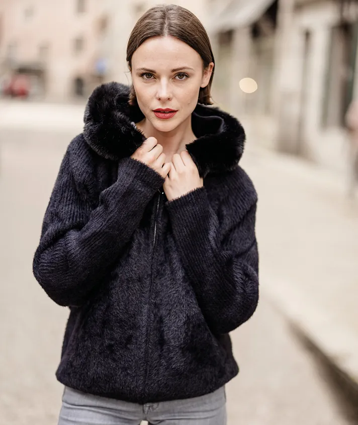 Veste avec col en fausse fourrure amovible