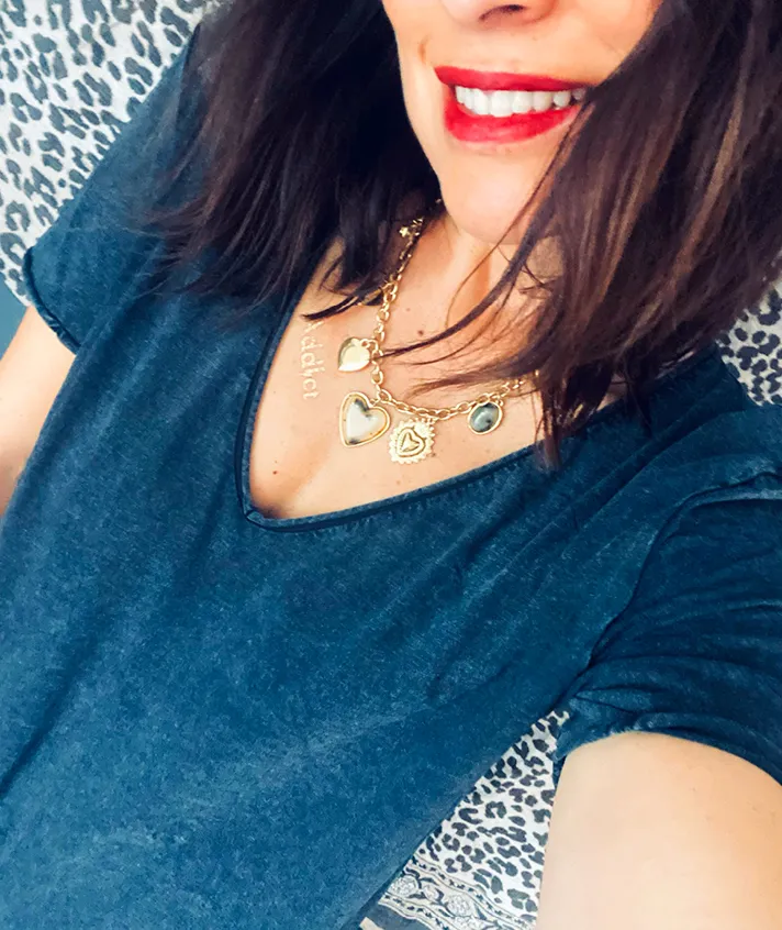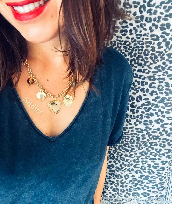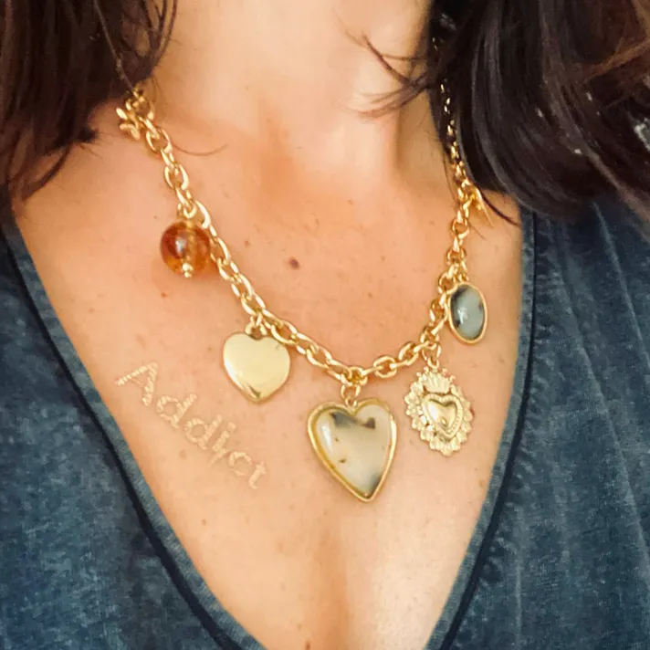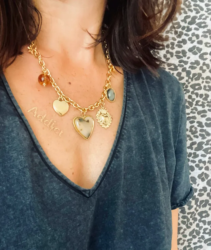 Chaîne dorée avec différentes pampilles coeur et perles