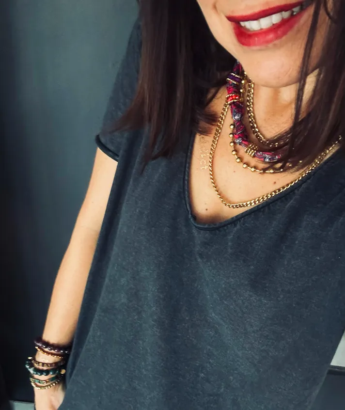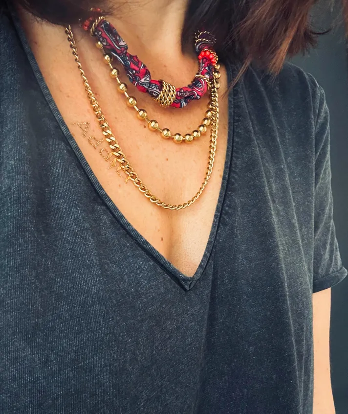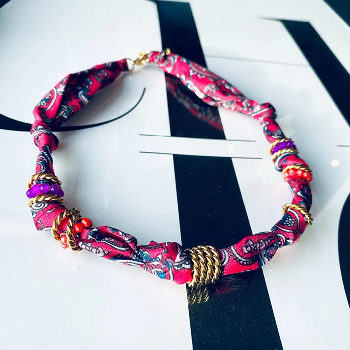 Collier tissu coloré, pampilles