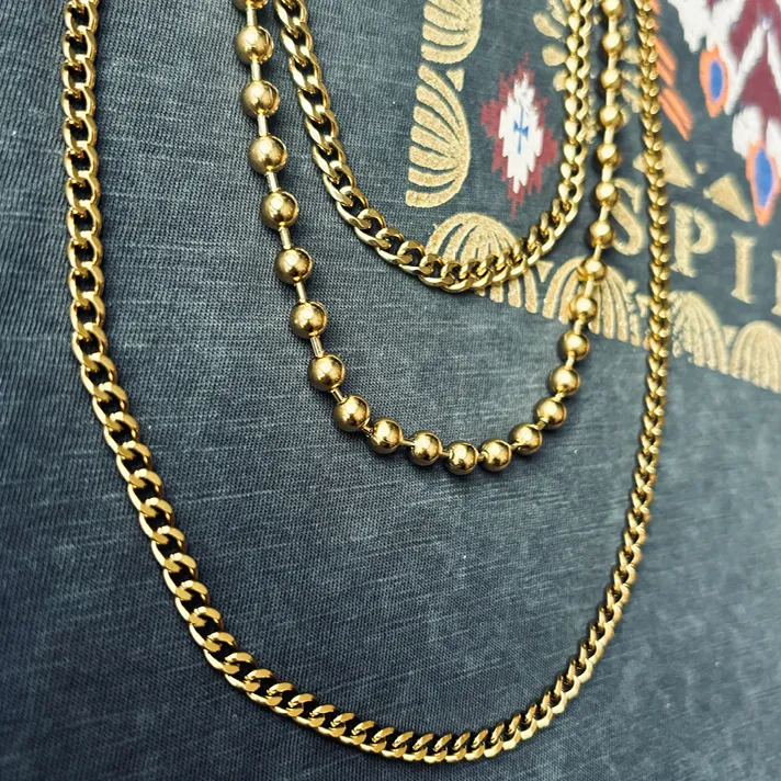Collier 3 rangs : 3 chaînes de mailles différentes