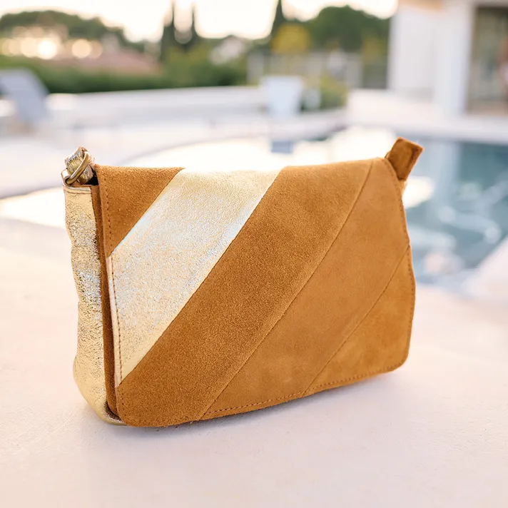 Cuir nubuck et iriséAnse réglable cuir irisé