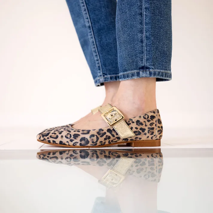 Cuirs nubuck imprimé léopard et irisé or